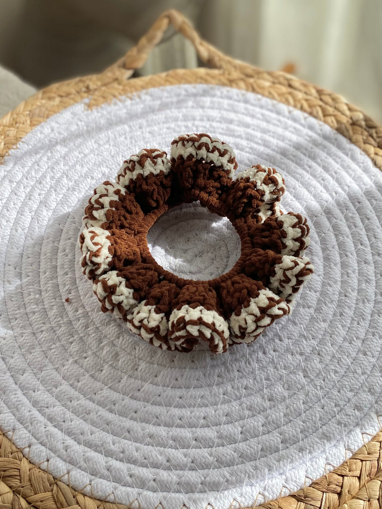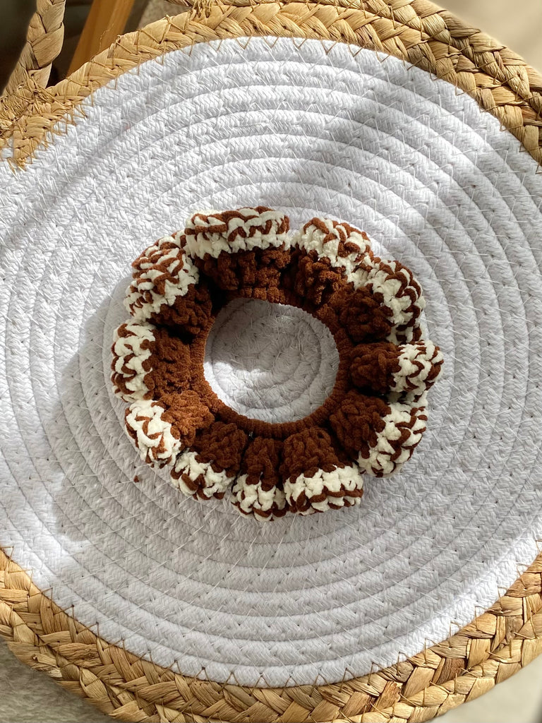 みさと店長がひとつひとつ時間をかけて編んだ手編みシュシュをお届けします。