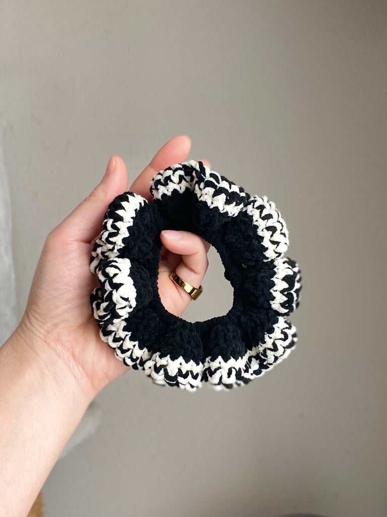 みさと店長がひとつひとつ時間をかけて編んだ手編みシュシュをお届けします。